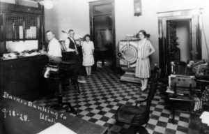 Faye Sanders was a familiar face at the Barnes Banking Company for forty-five years. She was the bank’s first female employee. In 1920, she was hired as a clerk/bookkeeper, and, in the 1930s, she became a teller. She would work as a teller up until the time of her retirement.