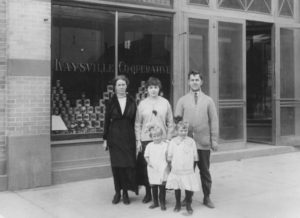 Faye’s first home in Kaysville was on the corner of 200 North and 300 West (184 North 300 West), and at the age of sixteen, she went to work as a clerk at the Kaysville Co-operative Mercantile Institution. She worked at the K.C.M.I. until she moved to the bank position.