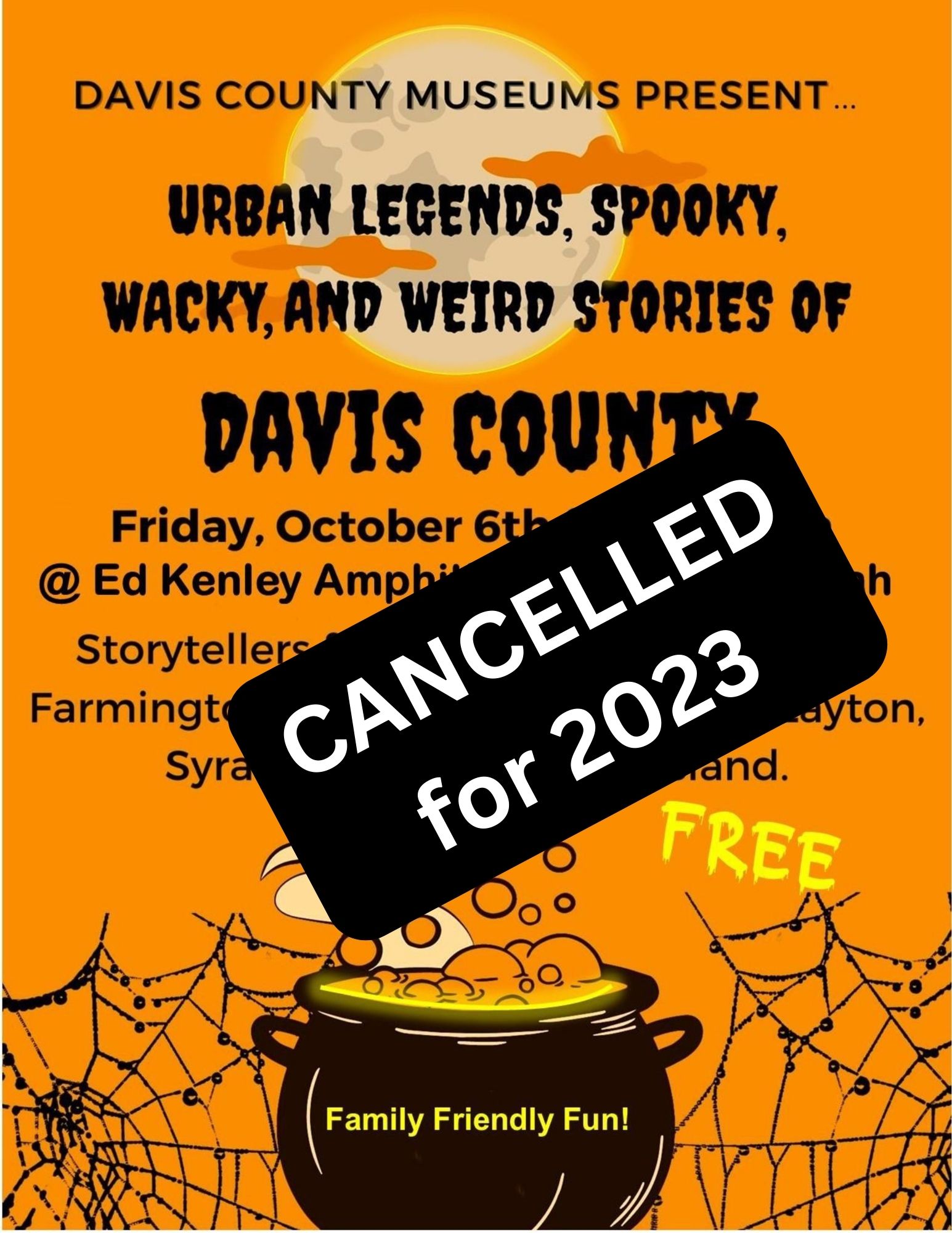 #1 Whether spooky or silly, stories featuring urban legends and historical stories appeal to humans. We first gathered around campfires, but now we offer seating in a well-lit local amphitheater. This FREE event is family-friendly and open to all. Featuring stories and storytellers from Davis County, you won’t want to miss this event. MID-SEPTEMBER UPDATE -THIS EVENT HAS BEEN CANCELLED FOR 2023