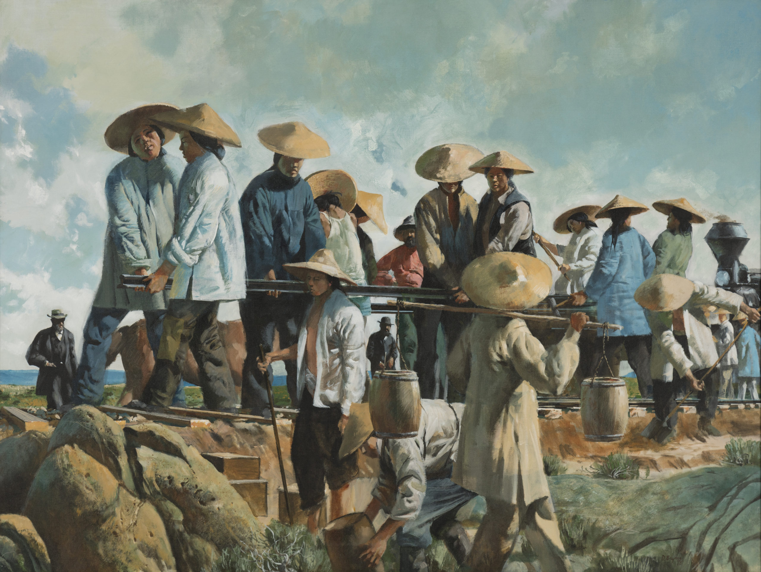 Chinese immigrants were drawn to the western United States as a result of the Opium Wars and to ensure their families’ survival. A significant portion of the labor force for the first American transcontinental railroad was made up of Chinese migrant workers. Numbering between 10,000 and 15,000, the Chinese track layers constituted about 90% of the Central Pacific Railroad’s workforce that laid track between Sacramento, California and Promontory, Utah by 1868.
