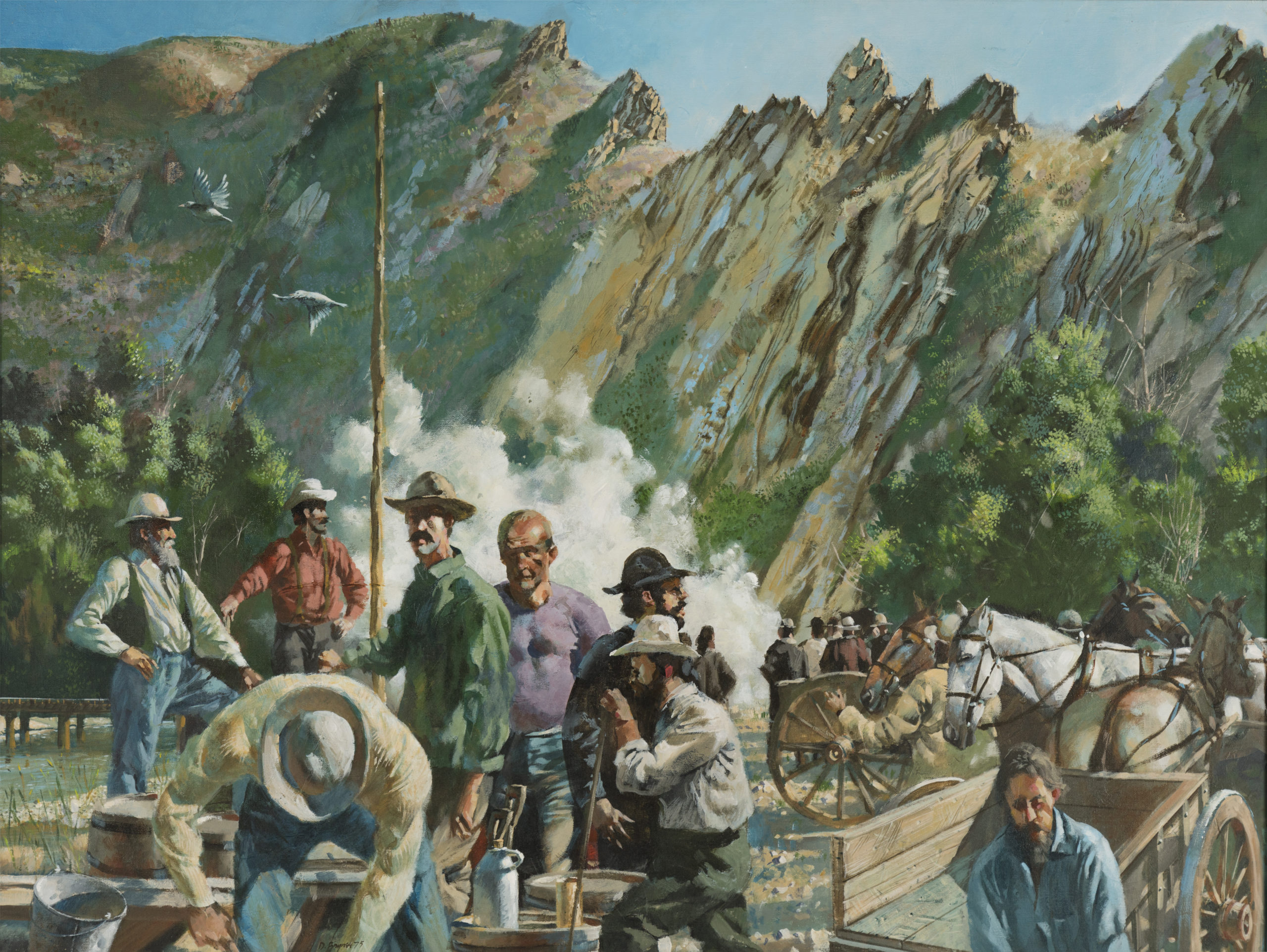 The Mormon construction crew was contracted to grade and blast tunnels for the railroad line through Weber Canyon.