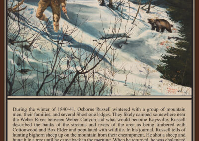 During the winter of 1840-41, trapper Osborne Russell wintered with a group of mountaineers, their families, and several Shoshone lodges. They likely camped somewhere along the Weber River between Weber Canyon and Kaysville. Russell described the banks of the streams and rivers of the area as being timbered with Cottonwood and Box Elder and populated with wildlife.
