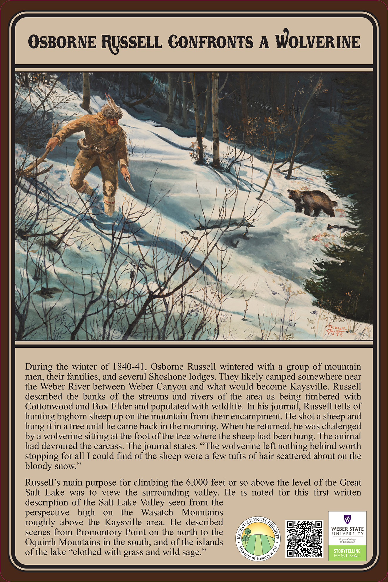 • The painting, Osborne Russell Meets a Wolverine created by Farrell R. Collett and commissioned for the nation’s bicentennial, is owned by the Weber State Storytelling Festival and shown by permission