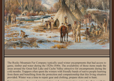 Atypical over-wintering settlement strategy utilized by Rocky Mountain fur trappers in the 1820s to 1840s required access to game, timber and water. The availability of these items made the areas around the Great Salt Lake and Cache Valley attractive for encampments during cold months. Trappers often spent the winters with friendly bands of native peoples, adopting many of their lifeways and benefiting from the protection, companionship, and labor this living situation provided. Down time from November through March was used to repair gear and clothing, hunt, prepare skins, and socialize.
